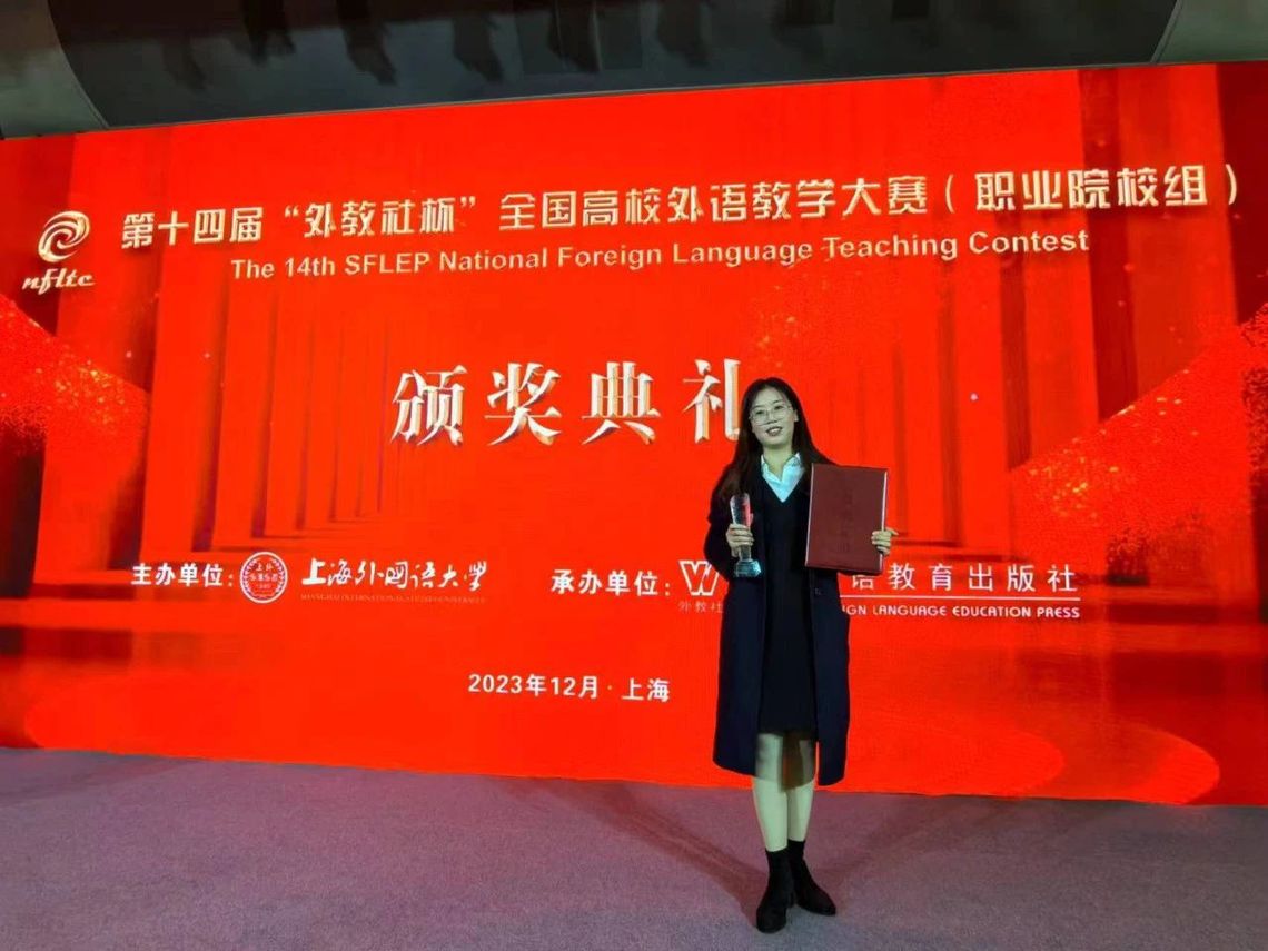 12月8日至10日,第十四届“外教社杯”全国高校外语教学大赛(职业院校组)全国总决赛成功举办。来自全国各省、自治区、直辖市的26位优秀参赛教师通过授课和说课等比赛环节同台竞技,角逐中国高校外语教学的最高奖项。经过两天半激烈的比拼,我校公共教学部教师王丽艳凭借精湛的教学技艺、流利的英语口语取得第十名的好成绩,荣获本届大赛二等奖,也创造了吉林省高职组的最好成绩。