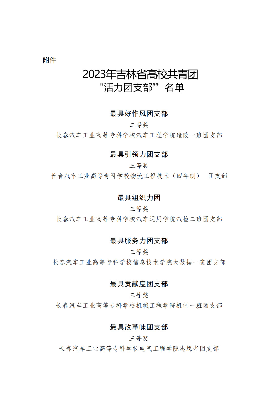 为落实《关于改革创新高校共青团工作 切实增强思想政治引领实效的若干措施》,激发高校团支部活力,深入挖掘、选树、推广一批在引领力、组织力、服务力、贡献度、改革味、好作风6个方面总体较好的团支部,发挥示范引领和辐射带动作用,学校广泛动员、遴选推报,最终6个团支部获评2023年吉林省高校共青团“活力团支部”荣誉称号。