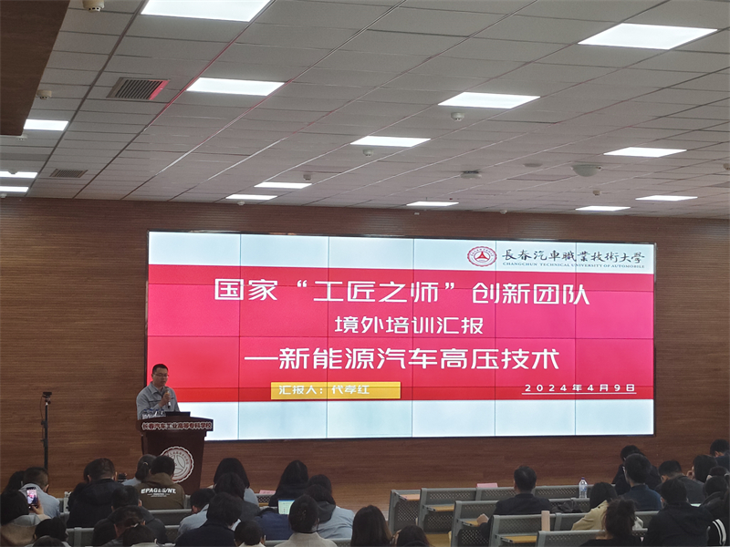 近日,我校选派赴德国学习考察的“工匠之师”8人团队,顺利完成各项学习任务,回归到各自的工作岗位。为将本次赴德学习成果转化为服务学校高质量发展的不竭动力,4月9日下午,学校在汽车工程学院报告厅组织开展了赴德国“工匠之师”团队学习成果交流分享活动。活动现场,李文博、冷帅、侯丽春和代孝红四位教师代表分享了赴德国学习收获体会。学校新入职教师和骨干教师现场聆听,全校教师通过超星直播进行线上学习交流。