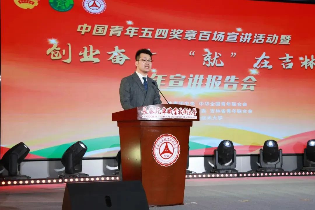 5月30日,由共青团中央、中华全国青年联合会主办,共青团吉林省委、吉林省青年联合会承办,我校协办的中国青年五四奖章百场宣讲活动暨“创业奋斗‘就’在吉林”青年宣讲报告会在我校成功举办。共青团吉林省委书记郑伟峰,学校党委副书记、校长李春明,党委副书记赵娜及校院有关领导出席活动,600余名青年教师和学生代表参加活动。