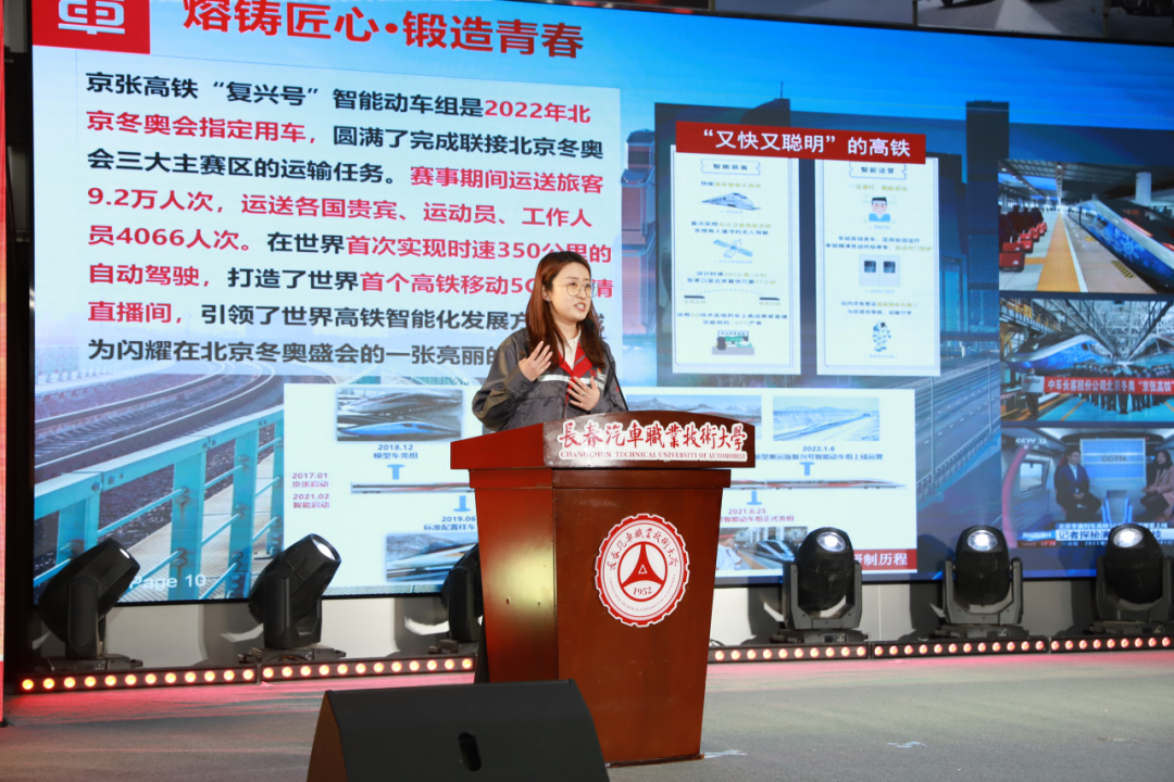 第27届“中国青年五四奖章”集体代表、中车长春轨道客车股份有限公司国家轨道客车工程研究中心新技术研究部数据软件专业设计师麻竞文分享了智能动车组设计团队敢于创新、敢于攻坚、敢于拼搏的优秀事迹。团队中35周岁以下青年占比72%,参与设计的京张高铁在智能行车、智能服务、智能运维、新材料应用、新技术开发等方面实现多个“国内首次”,在北京冬奥会期间设置全球首个高铁列车上的5G超高清演播室。