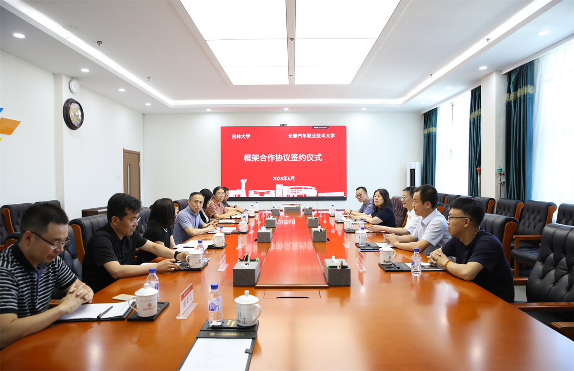 为发挥教育资源作用,实现优势互补、协同育人,6月17日,我校与吉林大学签署框架合作协议。吉林大学教务处副处长张宇、机械与航空航天工程学院院长周晓勤、机械制造及自动化系主任刘强、副主任许蓬子、党支部书记呼咏,我校副校长张勇忠、各学院院长,相关职能部门负责人共同出席仪式。签约仪式由产教融合发展中心主任杨冬旭主持。