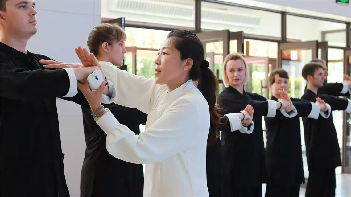 教师为外籍学员纠正行礼动作