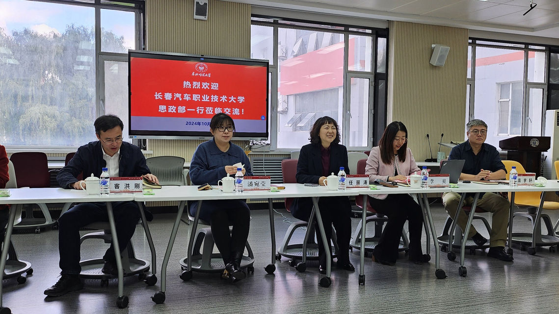 10月15日,我校思想政治理论教研部主任于伟丽带队赴东北师范大学马克思主义学部开展“对标本科重点马院建设”调研座谈活动。东北师范大学马克思主义学部常务副书记任丽涛、副部长李爽、党委副书记兼副部长潘宛莹、德法系主任客洪刚、中国近代史基本问题研究系副教授高宇轩参会。此次活动以座谈交流为主要形式,围绕教学管理、教研科研、课程建设、队伍建设、特色党建等相关工作,开展深入研讨。