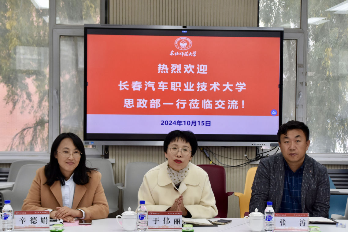 会上,于伟丽介绍了我校思想政治理论教研部基本情况。潘旋、辛德娟、于伟丽三位教师,围绕本科课程建设过程中的困惑,与东北师大相关课程负责人进行深入交流。