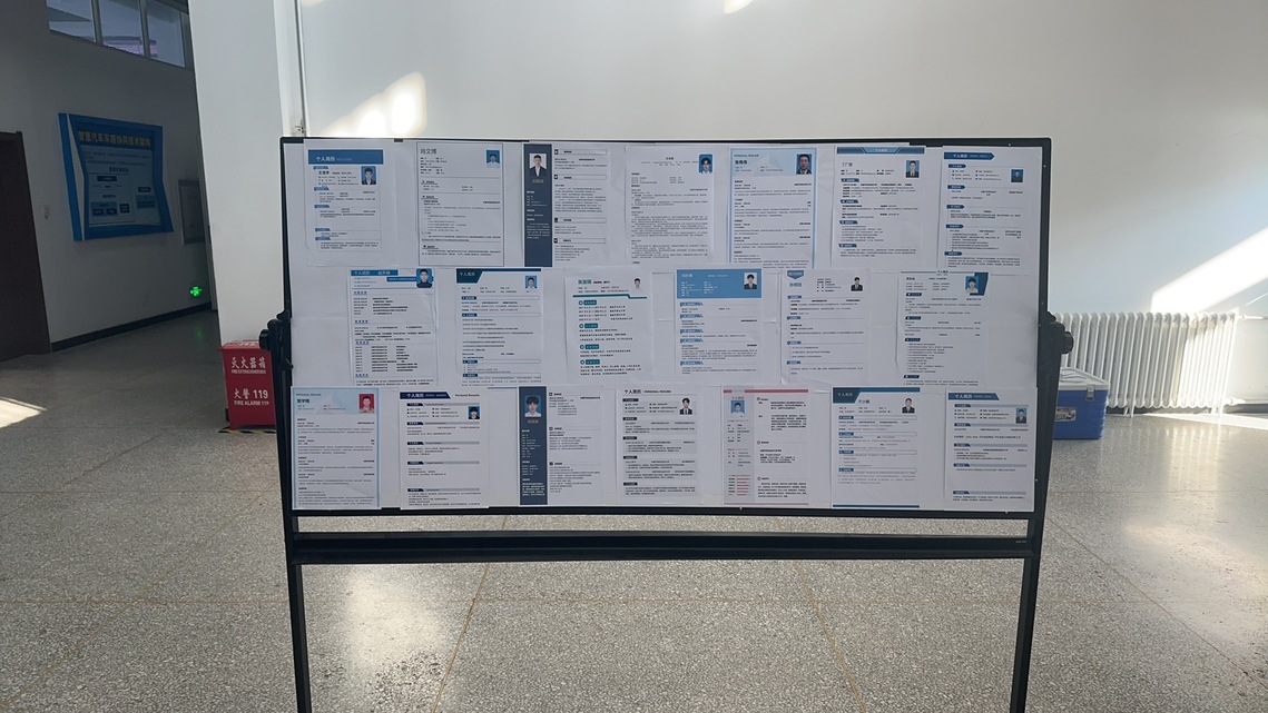 活动现场,展示了20份经过学院评比脱颖而出的精美简历,这些简历内容丰富、设计新颖,充分展现了同学们的专业技能、实践经验和个人风采。来自不同专业的同学们发挥创意,在简历中加入了个人作品展示,通过简洁明了的排版和重点突出的表述让人眼前一亮。他们的简历风格各异,充分展示了选手们扎实的专业知识和丰富的实践经验。