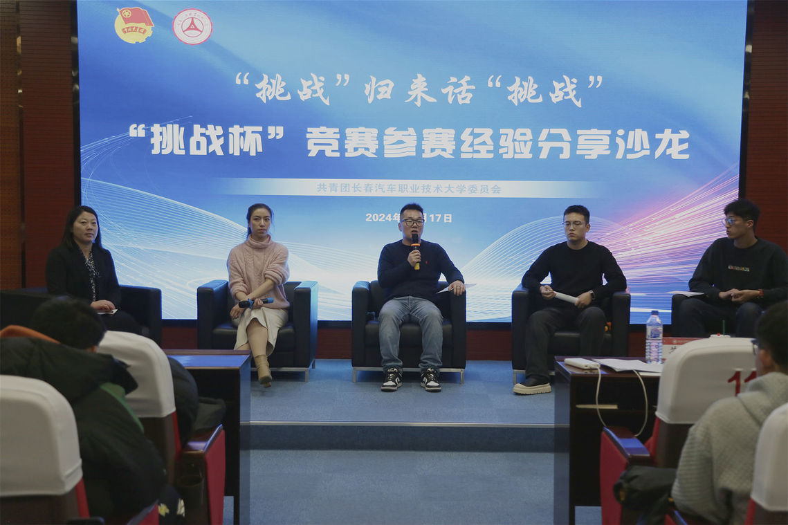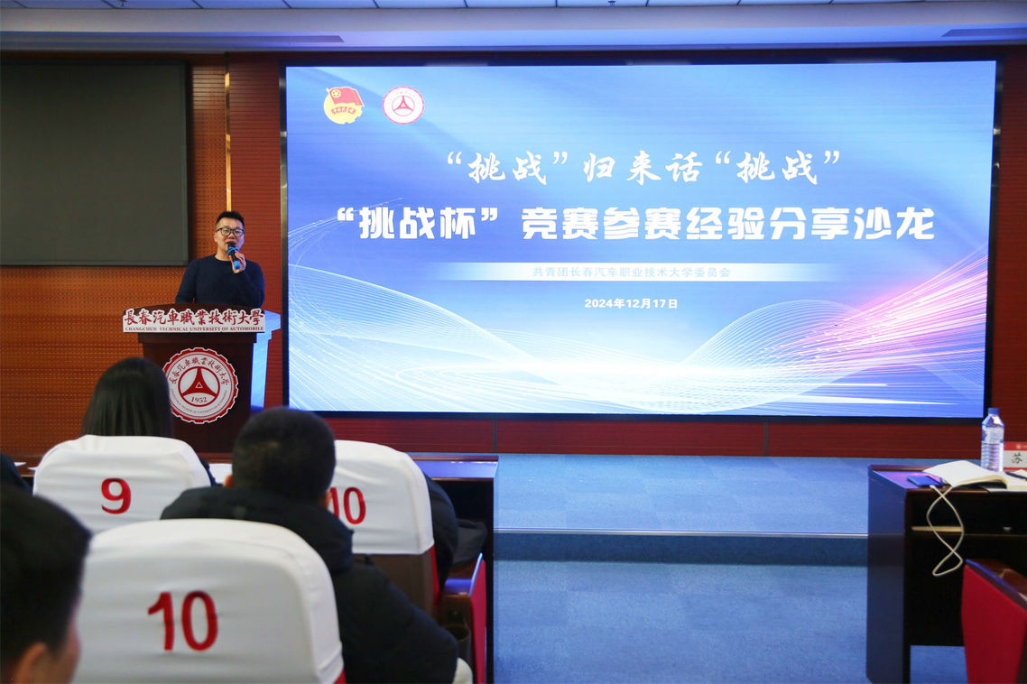 为总结参赛经验、发挥榜样带动作用,同时为广大热爱科创活动的同学提供交流的平台,带动引领大家走近挑战杯、了解挑战杯、参与挑战杯,增强创新意识、创新能力、创新思维,12月17日,校团委举办“挑战”归来话“挑战”——挑战杯竞赛参赛经验分享沙龙。本次活动力邀吉林省“挑战杯”竞赛工作专家顾问李晓程出席并对2025年“挑战杯”全国大学生课外学术科技作品竞赛作专家解读,汽车营销学院团总支书记戚旭娣、第十三届“挑战杯”国家银奖项目参赛选手吴嘉琪、宋睿琛,团委相关老师、学校部分项目指导教师以及220余名同学参加活动。活动由校团委副书记苏崇刚主持。