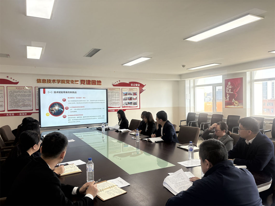 丁卓以“筑牢思想防线 勇担时代使命”为主题,结合信息工程学院教育教学工作特点,从高校意识形态工作的重要意义、面临形势、工作举措、党员责任担当等四个方面上了一节生动的党课。丁卓强调,全体党员教师要进一步提高政治站位,筑牢思想防线,做意识形态安全的“技术卫士”;要坚定文化自信,传播和弘扬中华优秀传统文化,做先进文化传播的“数字先锋”;要勇于创新,把专业教学与“网络强国”“数字中国”建设紧密结合,做网络空间的“创新尖兵”,共同筑牢数字时代的思想防线,为建设行业性、开放式、创新型的中国特色、世界一流职业技术大学而努力奋斗。