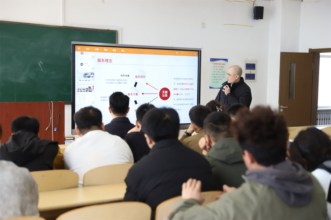 会后,广州天信保险公估有限公司召开了就业宣讲会,袁棵详细解读了招聘岗位、任职要求、薪资待遇、职业发展路径等,学院近百名学生积极参与。