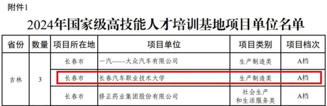 近日,人力资源和社会保障部办公厅、财政部办公厅公布了2024年国家级高技能人才培训基地和技能大师工作室项目单位备案名单(人社厅函〔2025〕50号),我校成功入选国家级高技能人才培训基地生产制造类项目A档,标志着我校技能人才培养工作再上新台阶,彰显了学校在高端技能人才培养领域的示范引领作用。