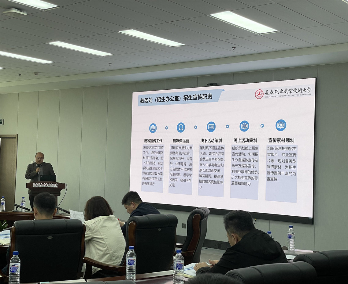 会议对2024—2025年的招生工作做出详细的总结与分析,教务处(招生办公室)处长王立超进行了2025年招生宣传工作的整体部署。