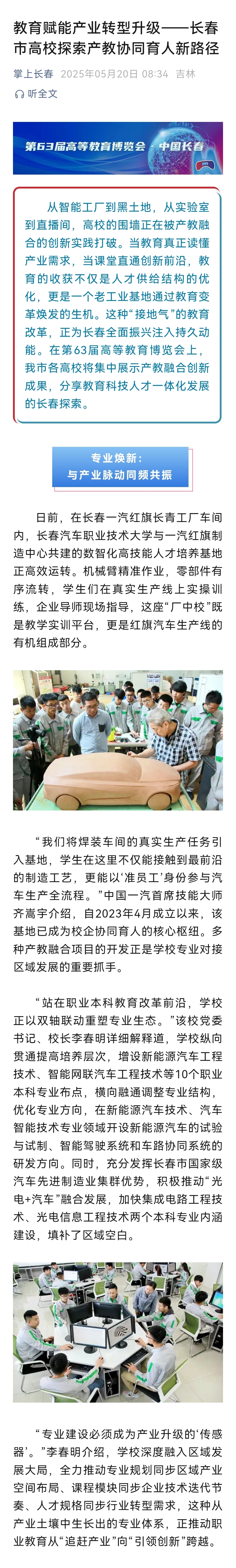 掌上长春——教育赋能产业转型升级 |长春市高校探索产教协同育人新路径