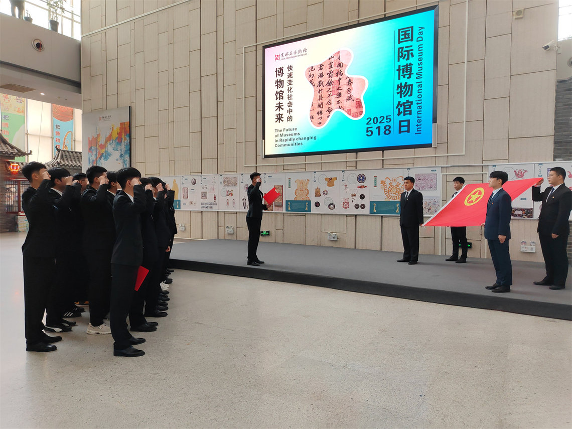 志愿服务结束,全体团员青年在青马学员王宇航的带领下,重温入团誓词。众人紧握右拳、目光坚毅,铿锵誓言在展厅久久回响,既是对入团初心的回溯,更是新时代青年担当使命、矢志复兴的庄严承诺。
