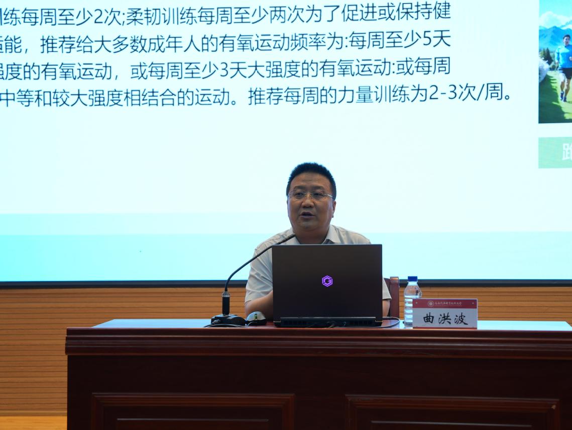 启动仪式特邀吉林省肝胆病医院医务科长曲洪波主任作首场专题报告。曲洪波以“关注健康 开创美好未来”为主题,针对高校群体特点,分享了定制“饮食红绿灯法则”“碎片化运动处方”等科学减重小妙招。