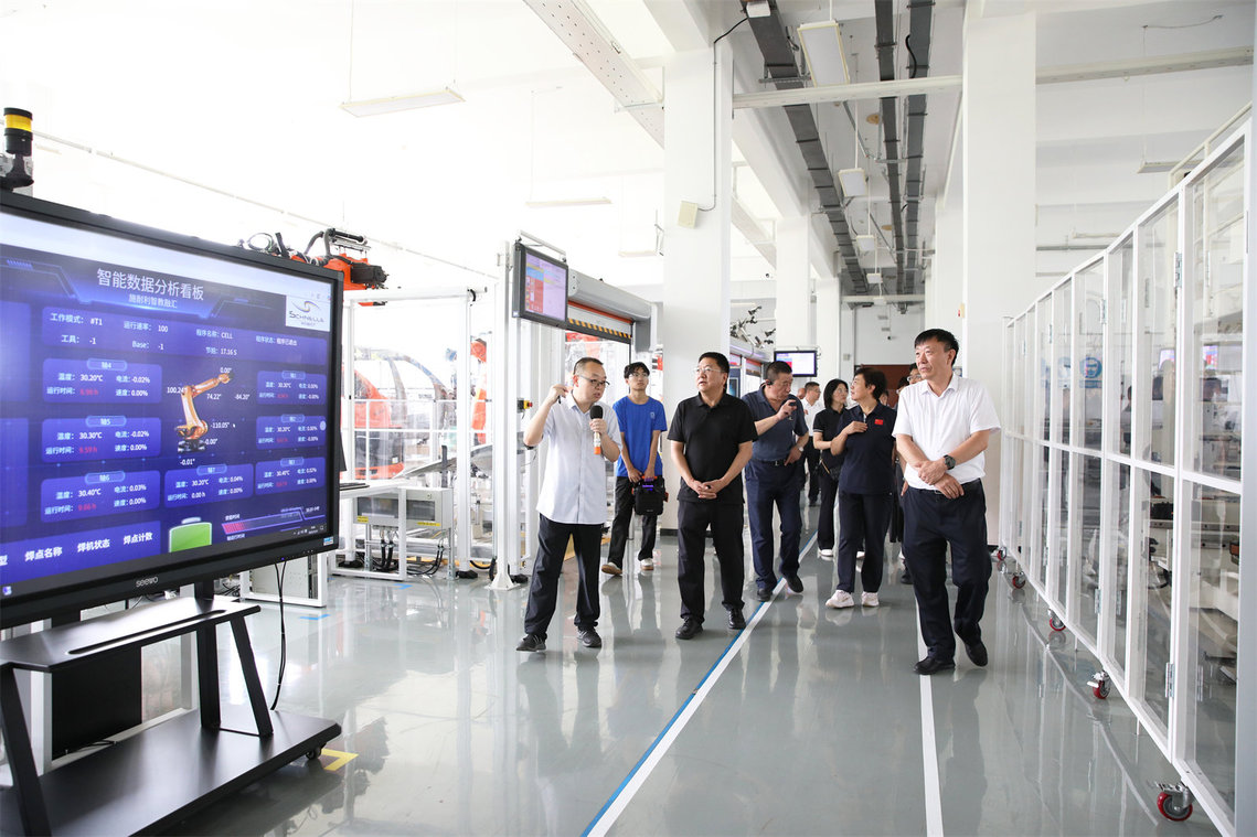 调研团队先后实地踏查了红旗汽车品牌服务中心、融媒体中心、新能源汽车技术实训中心、智能汽车工程研发服务中心及智能制造协同创新中心,详细了解实训基地建设、校企合作项目运行及学生实践能力培养等情况,对我校将产业前沿技术与教学实践深度融合的举措给予高度评价。