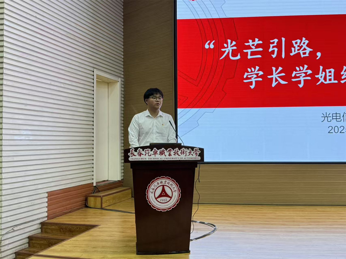 为助力2025级新生快速适应大学生活、明晰学业发展方向,9月10日,光电信息学院以“光芒引路,‘芯’火相传”为主题举办学长学姐经验分享会。2021级毕业生王立博(现就职于一汽研发总院)、2023级学生马麟程与杨玥浛、2024级学生曹佳四位优秀学生代表受邀分享。学长学姐们围绕新生关切的就业规划、班级服务、实践成长、学习适应等核心议题,提供兼具实用性与指导性的成长建议。