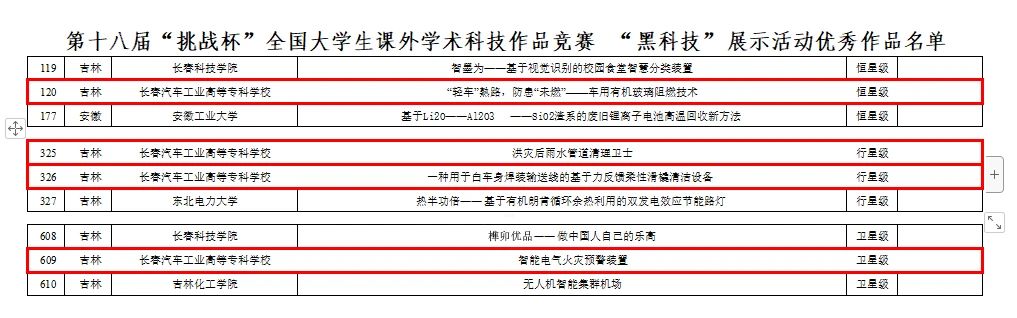 10月14日,第九届吉林省“互联网+”大学生创新创业大赛闭幕式在吉林财经大学举行,吉林省教育厅党组书记、厅长,省委教育工委副书记张洪彬出席闭幕式。我校作为本届大赛“优秀组织奖”获奖单位应邀参加本次活动,这也是我校连续3年获此殊荣。张勇忠副校长代表学校领奖本次吉林省“互联网+”大学生创新创业大赛闭幕式举办了丰富的同期活动,包括吉林省高校服务“一主六双”高质量发展战略成果展、吉林省大学生创新创业成果展、大学生创客集市、“双创”直播等。活动邀请了省教育厅相关领导与省内高校的领导、师生代表以及媒体代表等参观展览。我校大学生创新创业成果展位展示了学校在创新创业领域取得的多项荣誉以及师生自主研发的桌面工厂3D打印设备、便携式胶枪离线测试工具等创新产品,受到了与会领导和参观人员的热切关注。我校大学生创新创业成果展位吉林省教育厅党组书记、厅长,省委教育工委副书记张洪彬参观我校展位下一步,学校将进一步深化产教融合、科教融汇,优化创新创业环境,搭建创新创业平台,全面提升新时代汽车人才培养质量和创新创业能力。参会人员合影留念撰稿:创新创业学院 单吉 审编:党委宣传统战部